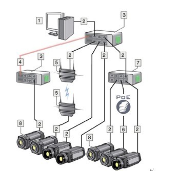 2) 直接網(wǎng)線傳輸(編號2所示)和無線傳輸(無線路由器,編號5所示)
