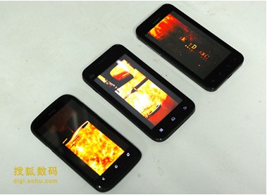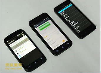 從左至右依次為HTC 新渴望V(左)、小米手機(jī)(中)、華為Honor(右) (開(kāi)機(jī) |