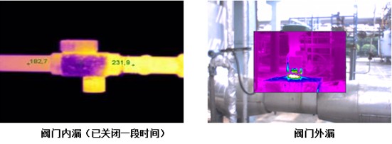1 閥門內(nèi)漏、閥門外部滲漏一般很難檢測出來,而其危害性很大。熱像儀可以迅速、直觀的檢測閥門的內(nèi)漏和外部滲漏,減少維護的工作量和提高效率。