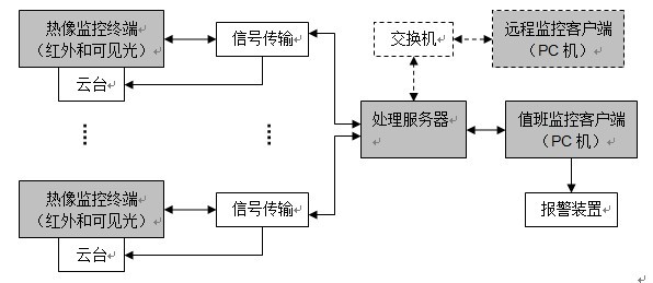 本地紅外熱像監(jiān)控與分析診斷系統(tǒng)由三大部分組成:紅外熱像終端,信號(hào)傳輸,處理服務(wù)器;。