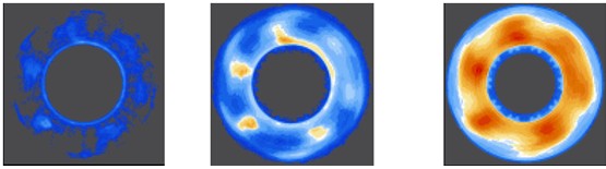下面是剎車片動作后,溫度變化過程中的三張熱圖。