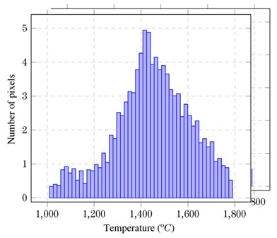 使用lance測溫后,立刻把魚雷車中的鐵水倒入鋼包,使用本文中提到的鐵水測量方法,鐵水傾倒時紅外攝像機中的發(fā)射率不斷變化直到溫度分布的平均值匹配之前用lance測的溫度。紅外攝像機測量的溫度對于用lance測的溫度有一個延遲,于是鐵水的溫度在這期間可能發(fā)生變化。然而,絕緣的魚雷車和熱慣性使這種差異可以忽略不計。