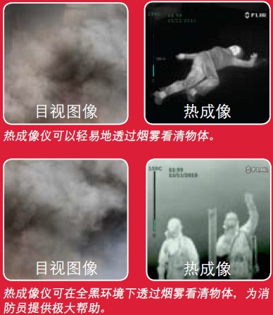 HF系列所有型號均可以在煙霧彌漫的房間里透過煙霧尋找人員。專業型均配備“融合”彩色調色板。