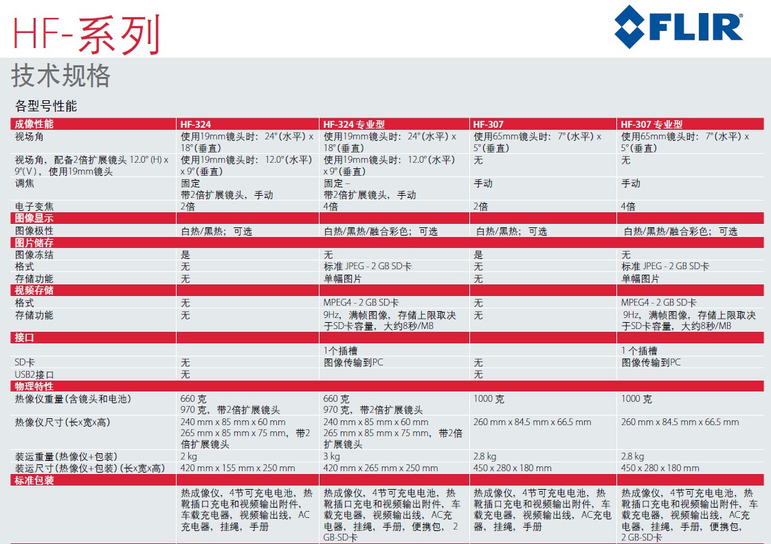 標準型HF系列產品能夠幫助消防員看清煙霧里面的情況。HF-324和 HF-307的 專 業 型 具 有 更 多 功能,比如:
